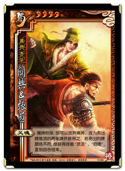 關興&張苞 一將成名12中的關興&張苞 体力上限 4 武将编号 YJSHU 026、YJ 104 武将称号 將門虎子 Online战功 龍兄虎弟 归属武将包 一將成名13、一將成名12、武逆乾坤·天 插画设计 HOOO 技能设计 官方、諾思冥羽 珠联璧合 OL开放情况 身份 The latest tweets from @ZhangBao_bot 張苞がイラスト付きでわかる! 張苞は、中国の三国時代の人物。字は不詳。父は張飛。弟は張紹。『三国志演義』では関興の義兄。正史と演義では大変設定が違う人物の一人。 概要 においては、"若くして死去した"としか記述が残っていない人物。 今日のイメージは明らかに『三国志演義』を代表とする後世の創作物におけるものである。 においては