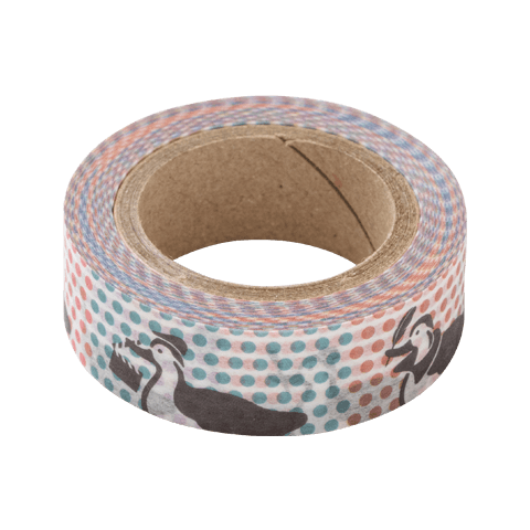 五色のハッピーバード柄 マスキングテープ幅15mm 黒ラビビ Booth
